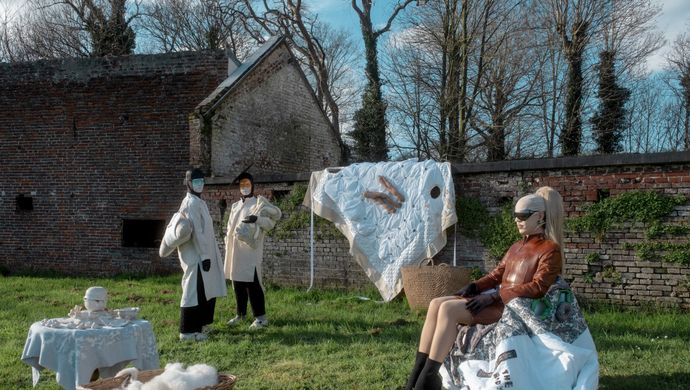 Written & directed: Martha Canga Antonio – Concept: Martha Canga Antonio, Marie Umuhoza & Vivi Focquet – Artistic production & dramaturgy: Marie Umuhoza & Vivi Focquet – Scenography: Jozef Wouters / Decoratelier in collaboration with Lila John – Sound creation: Ashley Morgan & Martha Canga Antonio – Cast: Martha Canga Antonio, Ashley Morgan, Lazara Rosell Albear, Jhaya Caupenne, Jazz Sanusi, Magdelaine Hodebourg & Rose Samy – Technical direction: Michiel Soete – Light design: Inès Isimbi – Artistic & vocal advice: Junior Akwety – Costume design: Godwin Agossah in collaboration with N’tchoula Kouene – Sound design: Diana Dzjamaldaeva – Hair design: Axelle Husikama – Production assistance: Harmonie Tack – Scenographical fabric: Lila John – Images & archives: Maryan Sayd, AD.mp4 – Coproductions: DE SINGEL, Ancienne Belgique, VIERNULVIER, Decoratelier & Workspacebrussels – Residencies: La Bellone, Volta, Kunstenwerkplaats, Zinnema & Gemeenschapscentrum De Vaartkapoen – Previous cast: Hubert Tuyishime, Kenza De Nolf, Christie Dinganga, Alex Perry & Zaydan – Thanks to: Shamisa Debroey, Sékou Semega, Joyce Jenny Loir, Soa Ratsifandrihana, Maria Dogahe, technical team DE SINGEL, Arne Huysmans and others