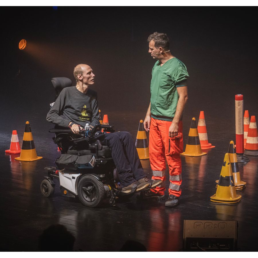 Deze aangrijpende voorstelling belicht de vier factoren die betrokken kunnen zijn bij een verkeersongeval. Michael Ghysels, slachtoffer van een ongeval, moet leren leven met de gevolgen. Voor hem is de rolstoel niet meer dan een schoenzool; hij toont wat veerkracht werkelijk kan bereiken.