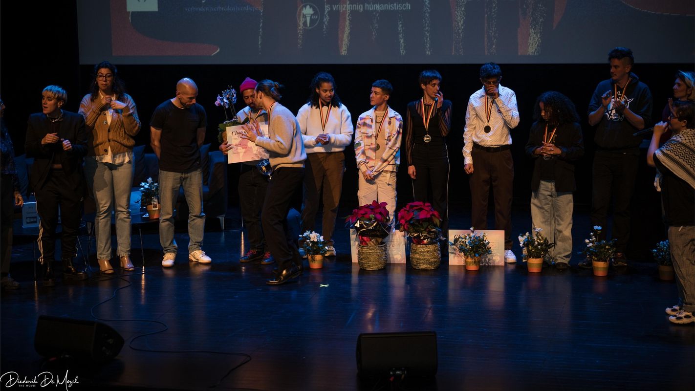 Het was een avond vol poëzie, passie en competitie tijdens het Belgisch Kampioenschap Poetry Slam 2024, dat op 7 december plaatsvond in bij VIERNULVIER in de sfeervolle Vooruit in Gent. De talentvolle Giovanni Baudonck veroverde de eerste plaats met zijn meeslepende voordracht, terwijl Boykid de tweede plaats in de wacht sleepte. Het publiek had ook zijn stem, en de publieksprijs ging naar de charismatische Khalid.
