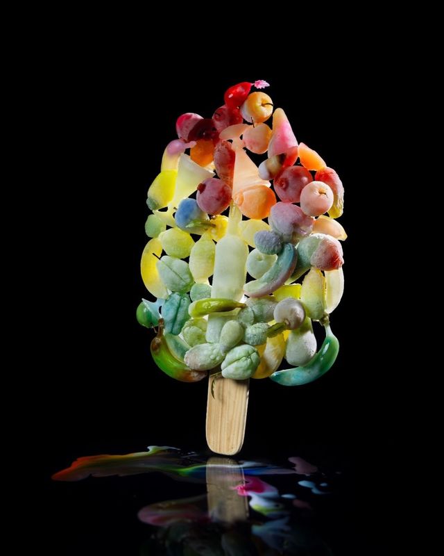Het ijzige vertrekpunt van onze voorjaarscampagne 'Fresh juice' vormt een reeks ijssculpturen met de sprekende titel ‘Frozen Vanitas’, gemaakt en gefotografeerd door de Belgische (foto)kunstenaar Athos Burez.
