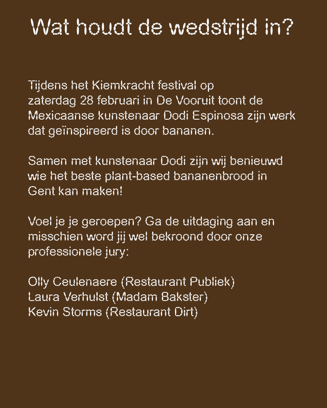 Breng je vegan bananenbrood binnen in De Vooruit op vrijdag 27 februari tussen 10:00 en 15:00 aan het onthaal. Enkel de eerste 25 maken kans op de titel!